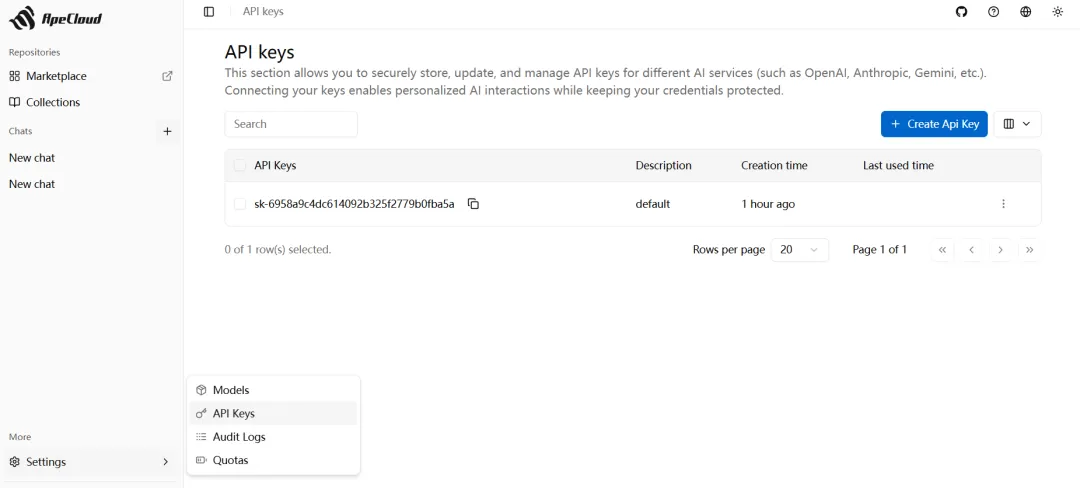 Click Agent, input Prompt, add the ApeRAG MCP tool, select the LLM in the top-right corner, click Publish to use.