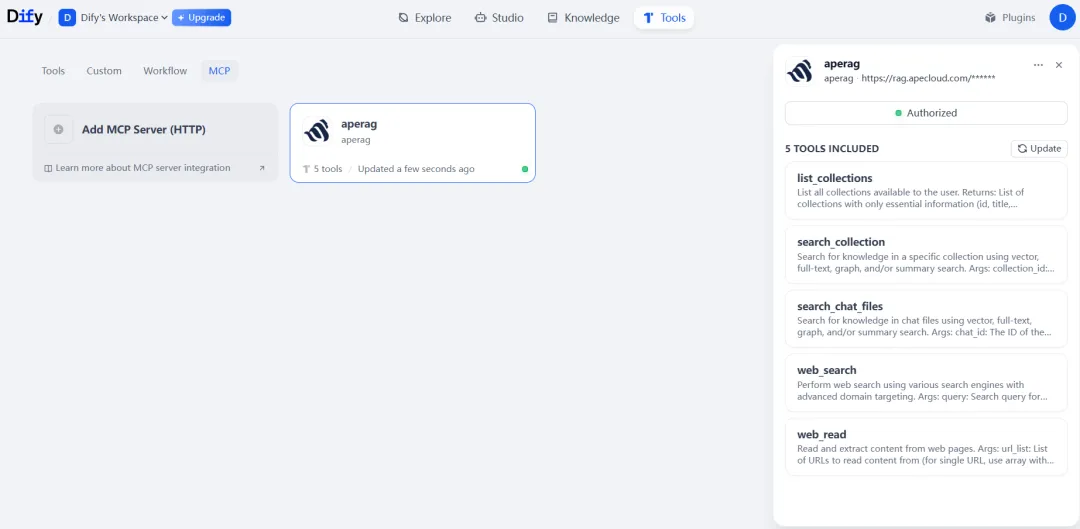 Integrating ApeRAG with Dify